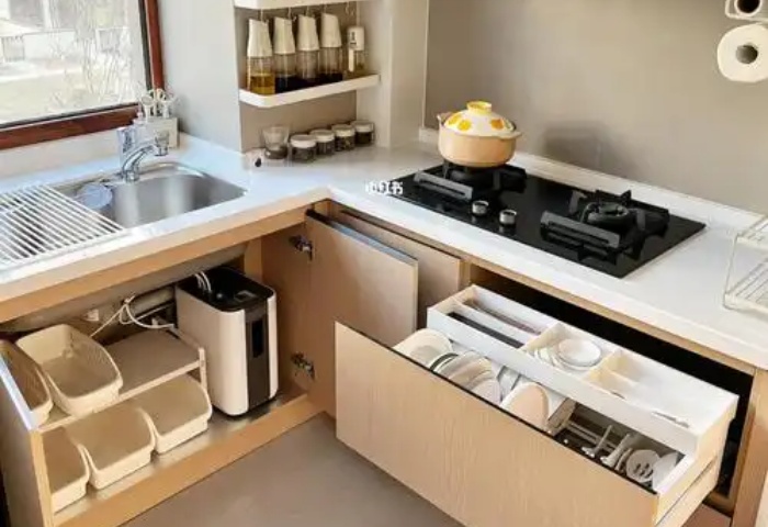 廚房的角落往往容易被忽視,但其實可以通過一些巧妙的設計來充分利用這些空間。例如,放置一個角落置物架,可以用來存放蔬菜、水果等。或者安裝一個可旋轉(zhuǎn)的調(diào)料架,放在角落處,方便取用各種調(diào)料。