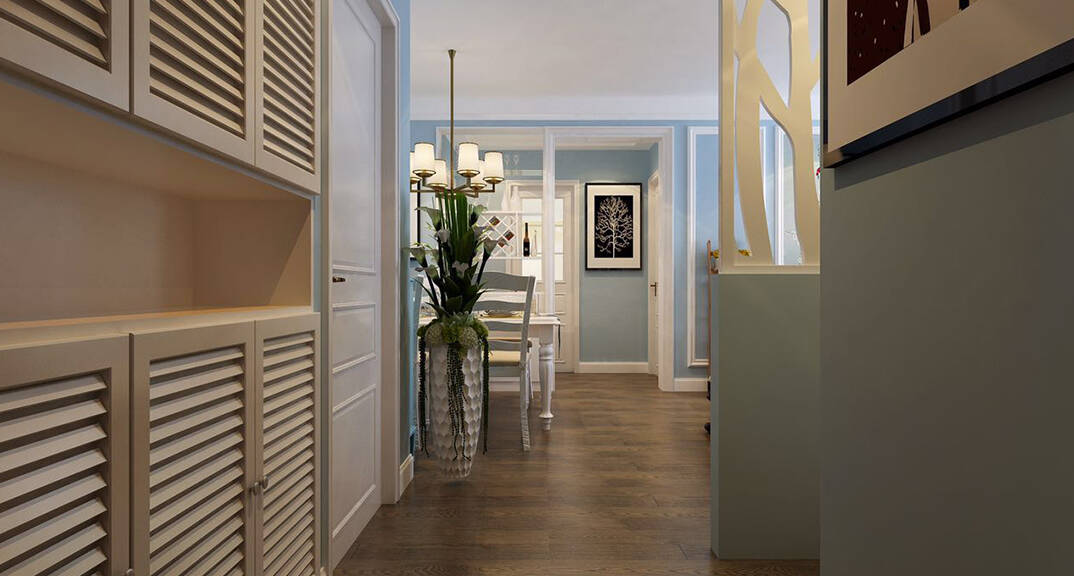 通過柜體及造型面優(yōu)化圓弧形手槍型的弊端,化解斜向墻體,規(guī)整動線,功能性滿足男女主人的收納需求,風格清新自然,屬于輕美式,溫馨舒適。