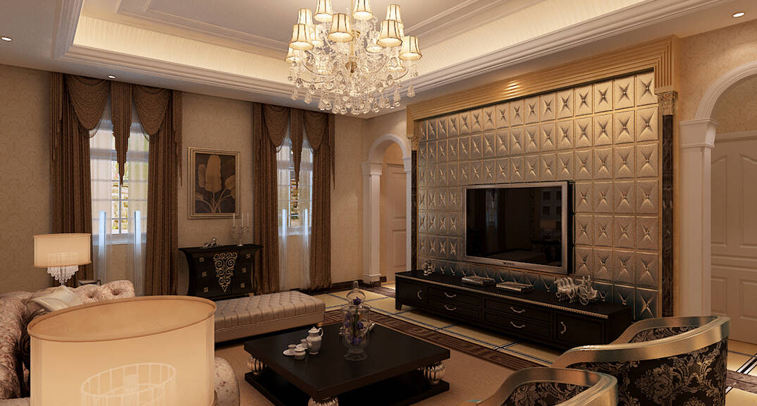 時代城翡翠郡240㎡別墅客廳歐式風格裝修效果圖