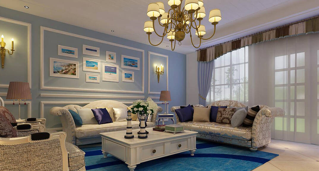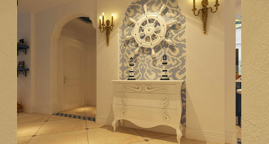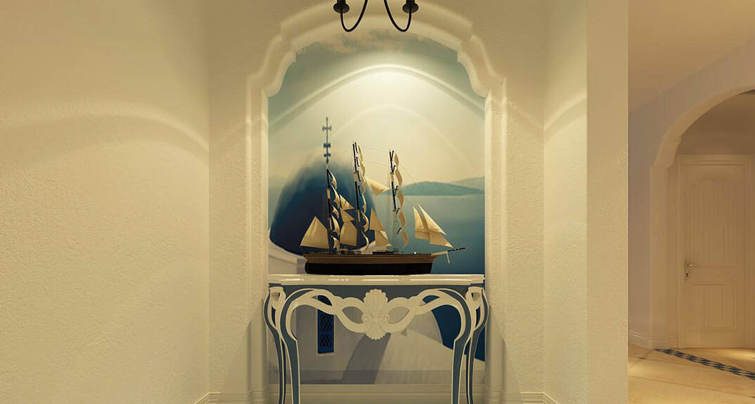 本案是一套別墅戶型,客戶非常喜歡大海的感覺希望把愛琴海的那種浪漫留在自己的心里。此案例運用了地中海特色的藍色調,從入戶玄關造型以及埡口造型都運用了摸弧的造型地面地磚運用了小磚加拼圖的感覺,客廳客戶喜歡大氣簡單的效果把一些地中海的裝飾品加以運用體現(xiàn)出地中海的小情調仿佛置身在其中。