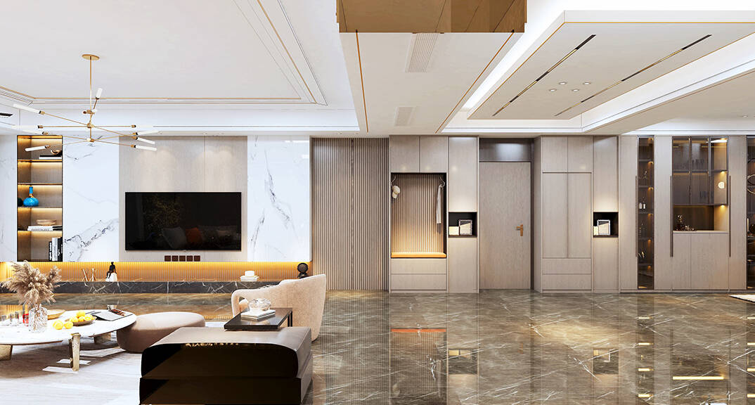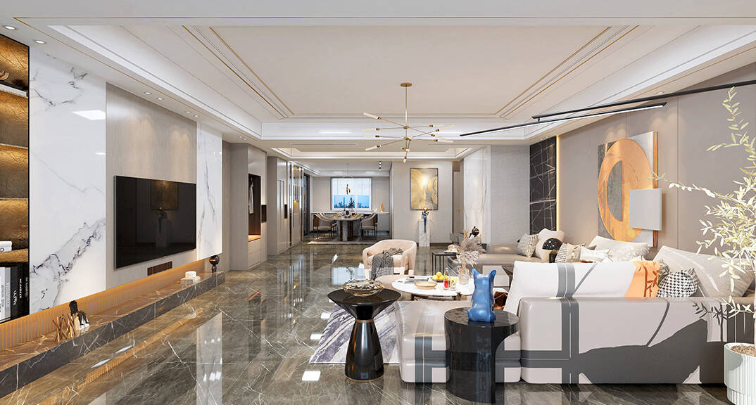 風景水岸350㎡五室兩廳三衛(wèi)客廳現(xiàn)代輕奢風格裝修案例效果圖