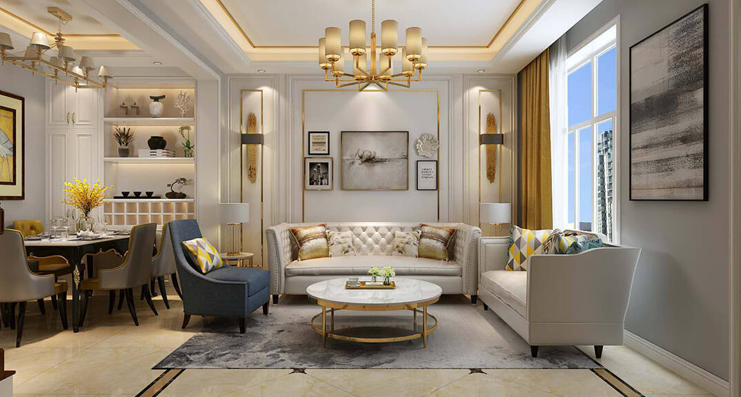 寶龍大沽河藝術(shù)村136m2美式風(fēng)格客廳裝修案例