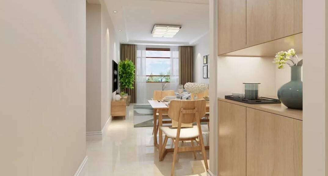 客餐廳一體化,以過(guò)道為分界線,玄關(guān)鞋柜有亮點(diǎn)中間做的是隔層的設(shè)計(jì),可以順手就可以放鎖匙、裝飾品、小物件、小盆栽等等,生活起來(lái)非常方便實(shí)用性很強(qiáng)。