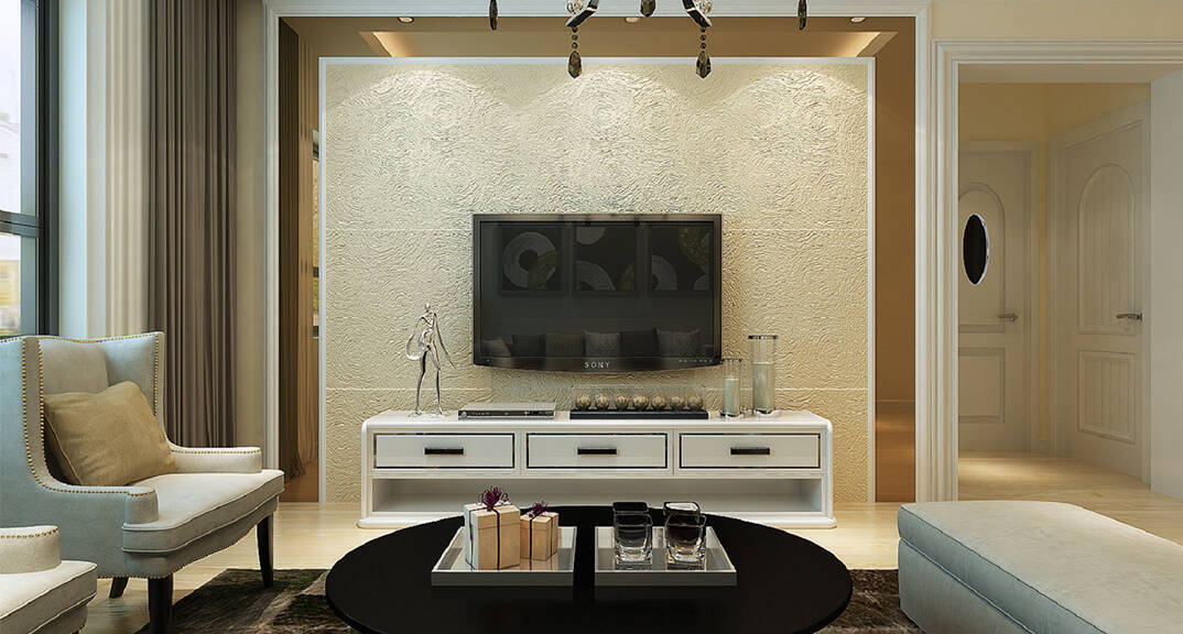 鑫江桂花園2室2廳77平美式風(fēng)格裝修客廳電視墻效果圖