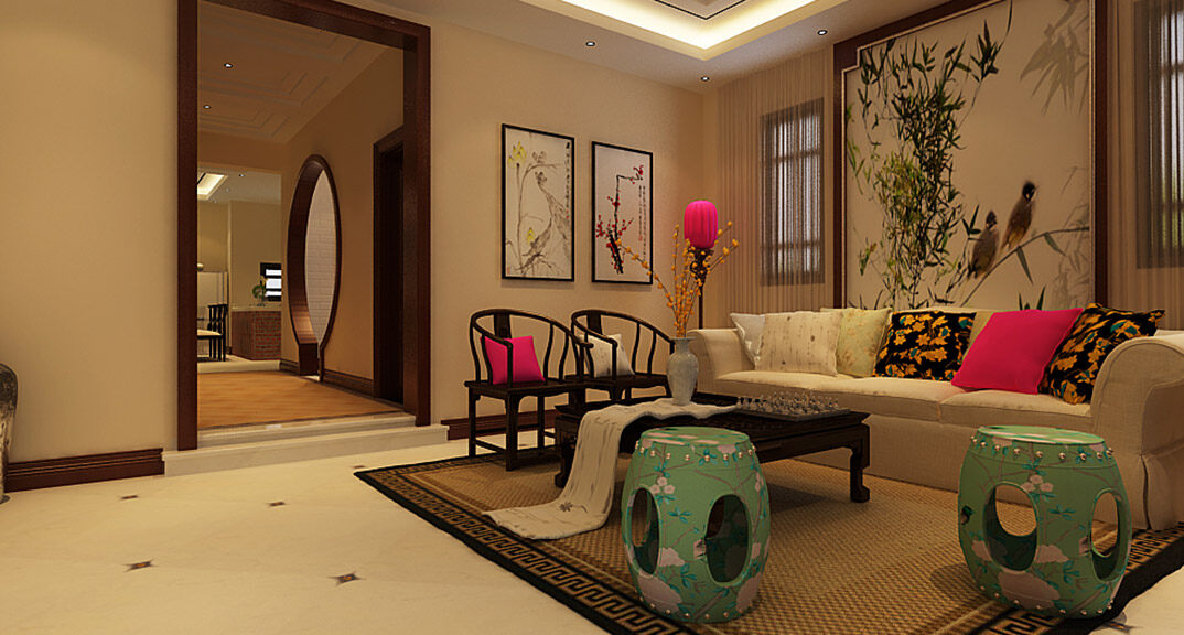 銀盛泰德郡220㎡別墅一客廳沙發(fā)新中式風(fēng)格裝修案例效果圖