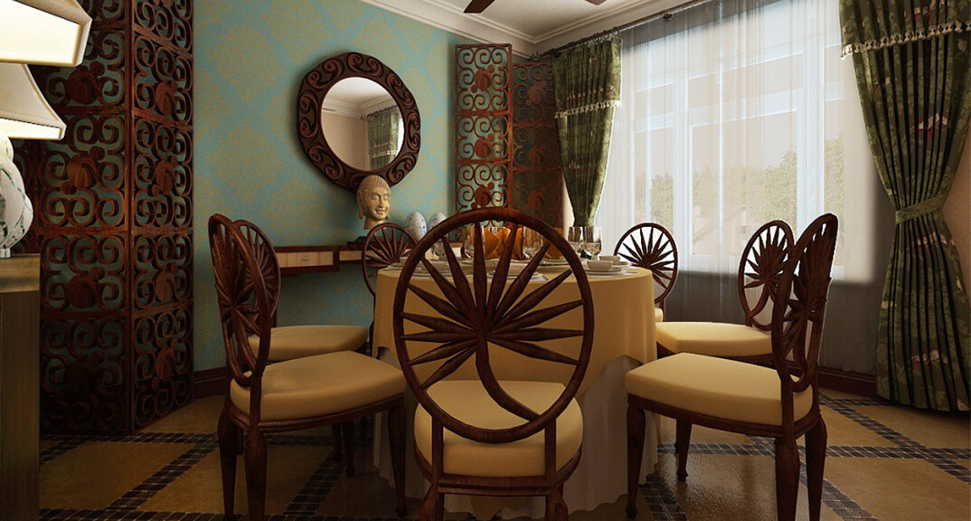 交運(yùn)山莊142㎡三室二廳餐廳東南亞風(fēng)格裝修案例效果圖