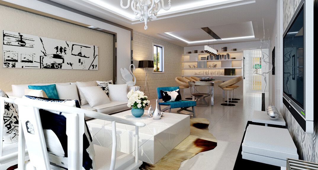 曉港名城146㎡三室一廳客廳新中式風(fēng)格裝修案例效果圖