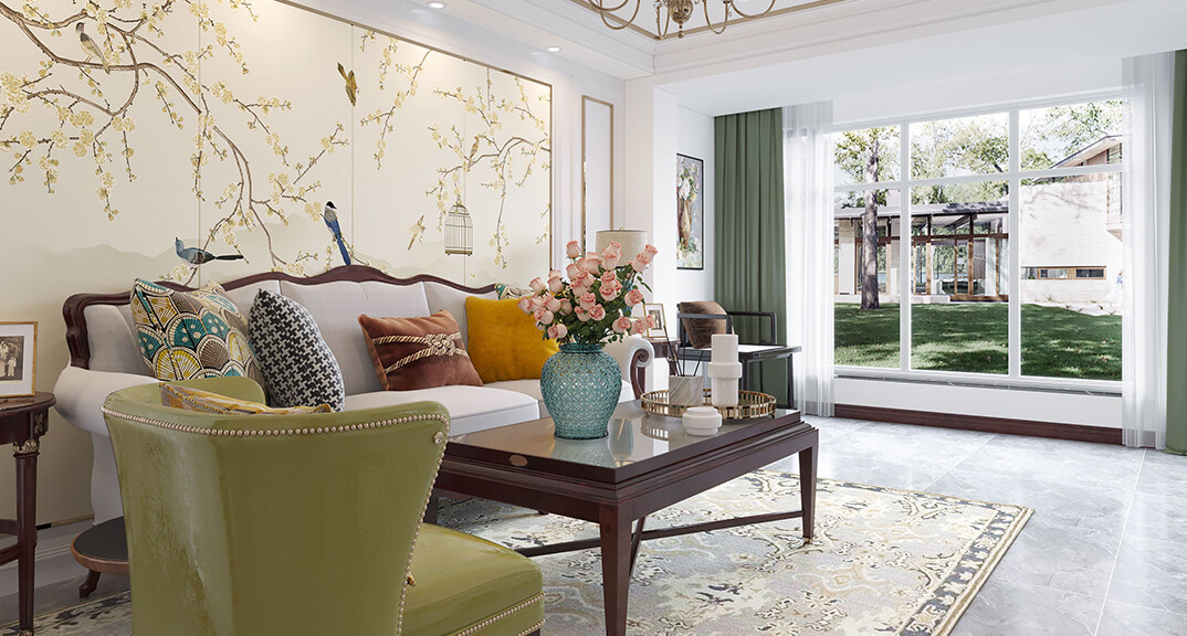 北苑風景130㎡兩室兩廳客廳美式風格裝修案例效果圖