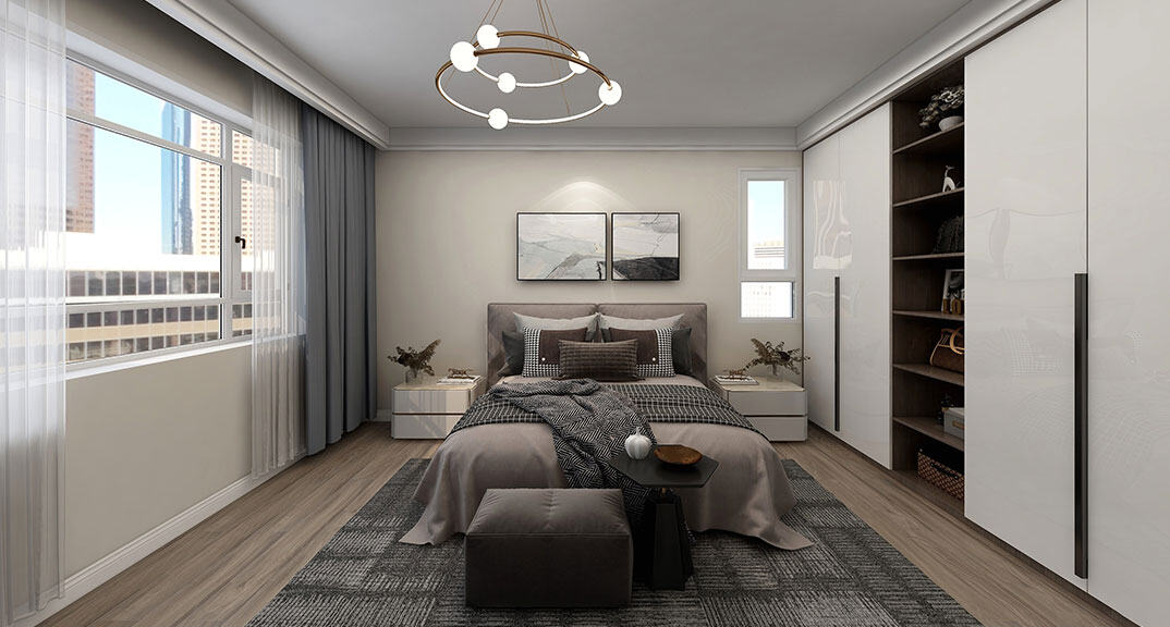金地·錦宸110㎡三室一廳主臥現(xiàn)代簡約風(fēng)格戶型研發(fā)案例效果圖