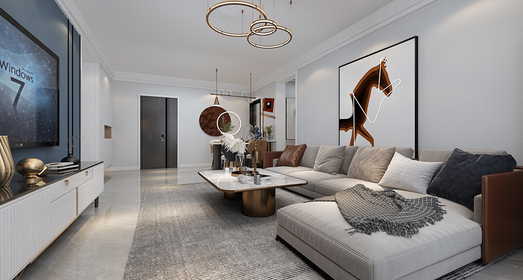 磊鑫伊頓陽(yáng)光125㎡三室二廳客廳輕奢風(fēng)格裝修案例效果圖