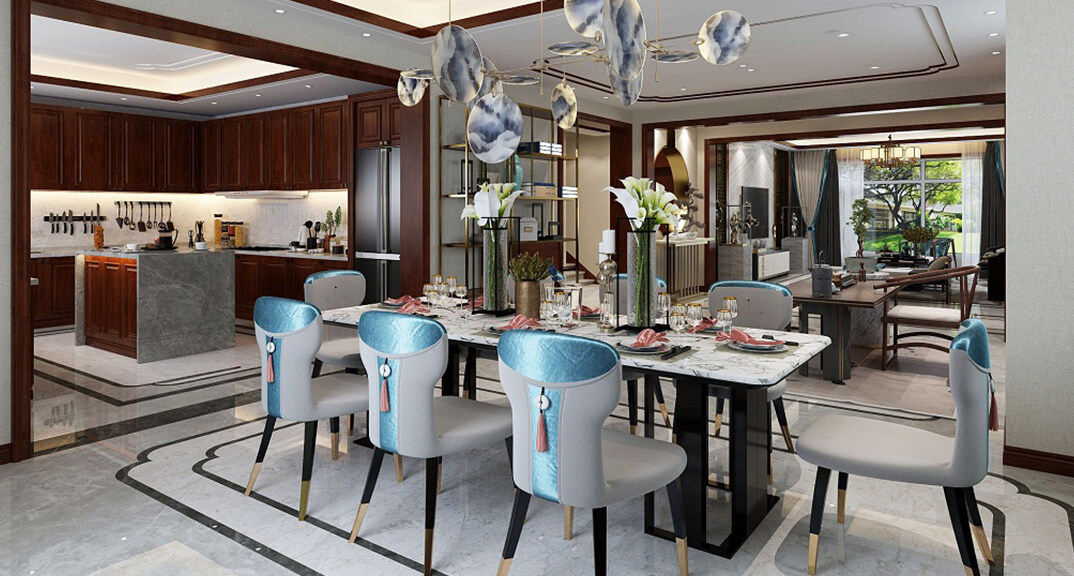 龍湖原山400㎡別墅餐廳美式風格裝修案例效果圖
