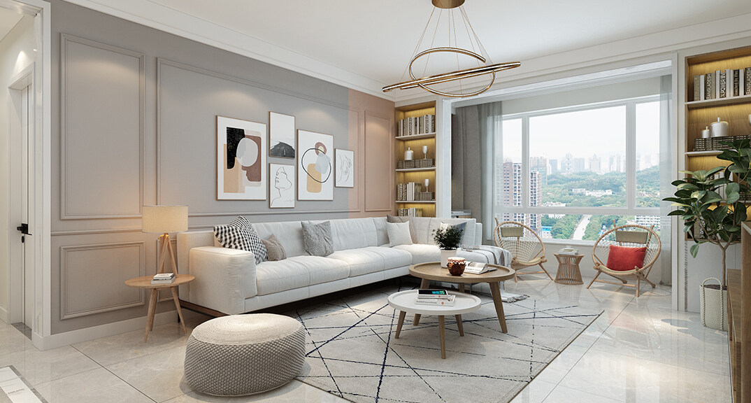 桂花園132㎡三室兩廳客廳沙發(fā)現(xiàn)代簡約風格裝修案例效果圖