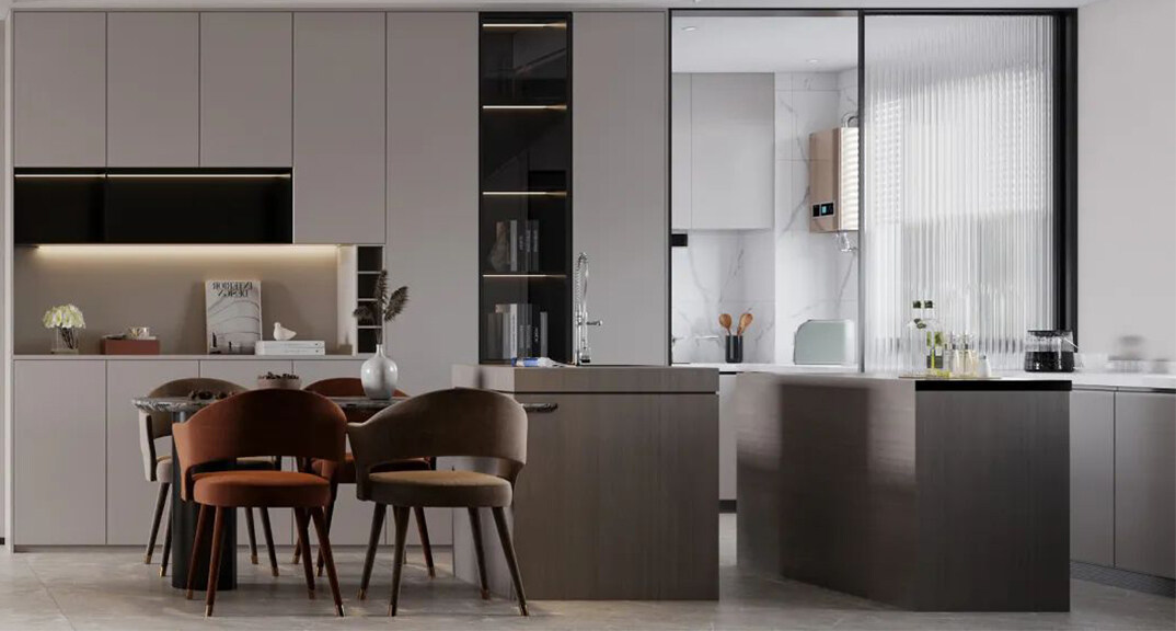 安泰未來城140㎡三室兩廳餐廳廚房現(xiàn)代簡約風(fēng)格裝修案例效果圖