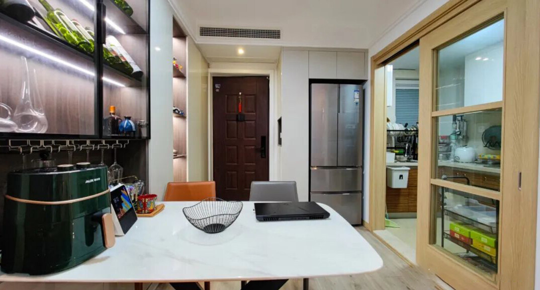卓越皇后道90㎡三室兩廳餐廳廚房輕奢極簡風格裝修實景效果圖