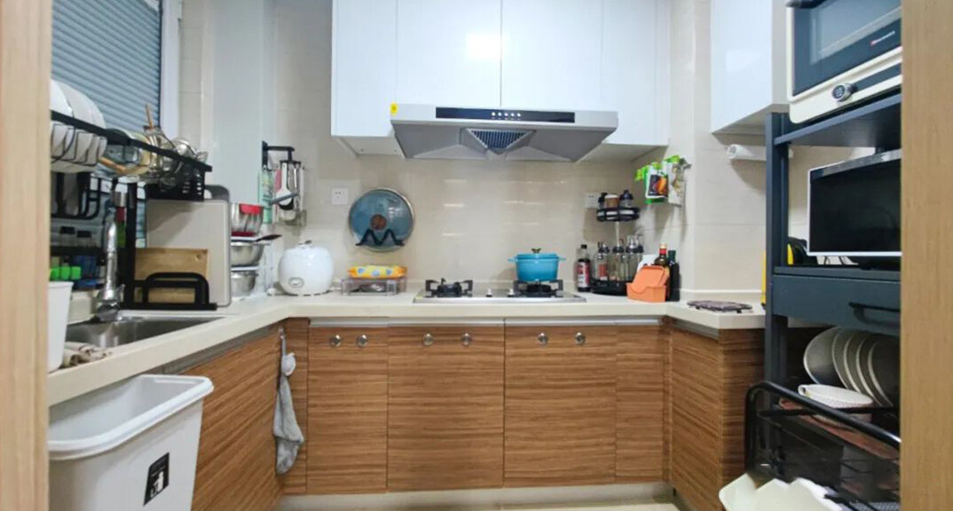 卓越皇后道90㎡三室兩廳廚房輕奢極簡風格裝修實景效果圖