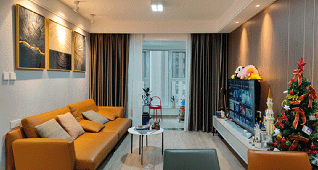 卓越皇后道90㎡三室兩廳輕奢極簡風格裝修實景效果圖