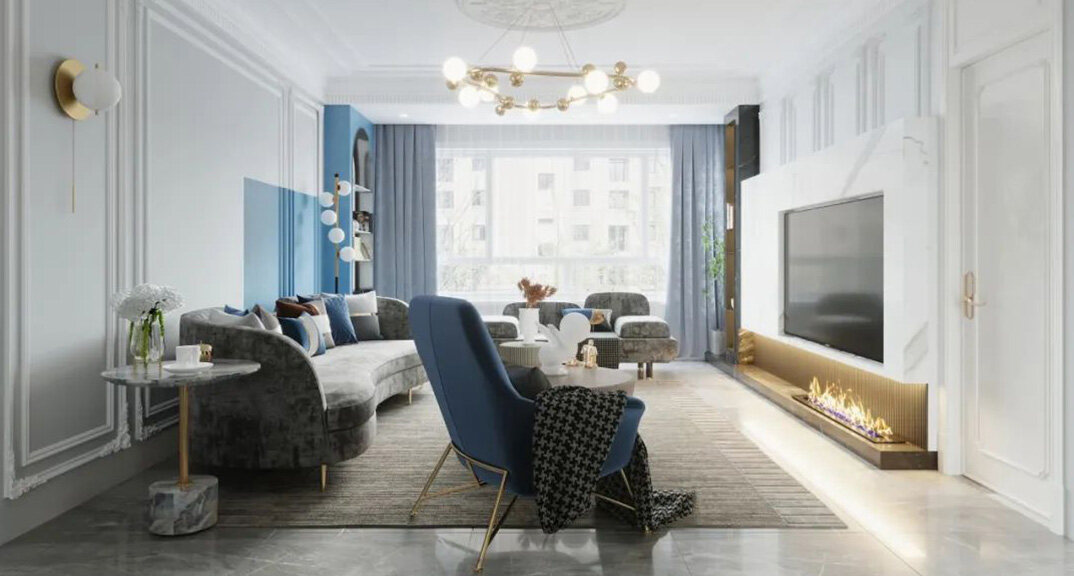 凱萊花園180㎡復(fù)式客廳電視法式輕奢風(fēng)格裝修案例效果圖