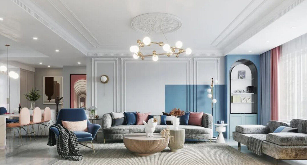 本期帶您看看一個(gè)法式輕奢風(fēng)的家居空間設(shè)計(jì),以淺色為主色調(diào),用少許亮色點(diǎn)綴,組成了柔和、舒適的體驗(yàn)感,去感受幸福而又美好的氣息。以現(xiàn)代舒適的法式輕奢風(fēng)為基調(diào),選用莫蘭迪色和金屬元素的融合,在自然光線的映襯下,高級(jí)感十足。