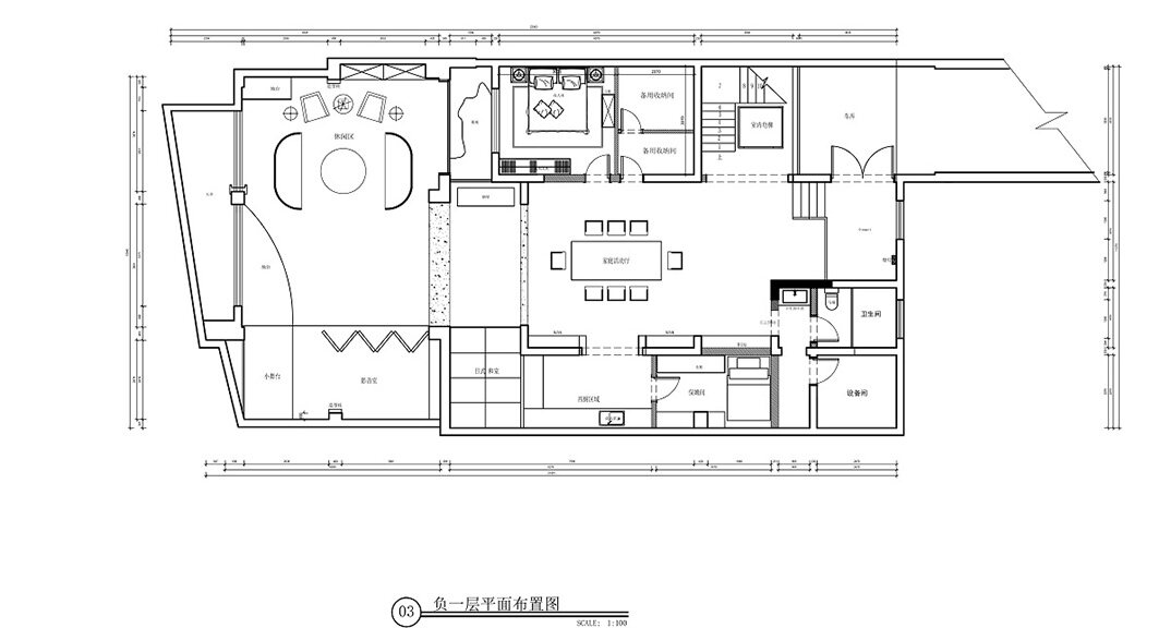 縵沙半島660㎡別墅負(fù)一層戶型平面布局圖