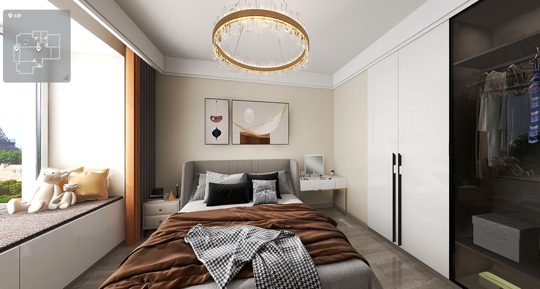 青鐵海御府143㎡三室兩廳臥室現(xiàn)代簡約風(fēng)格裝修案例效果圖
