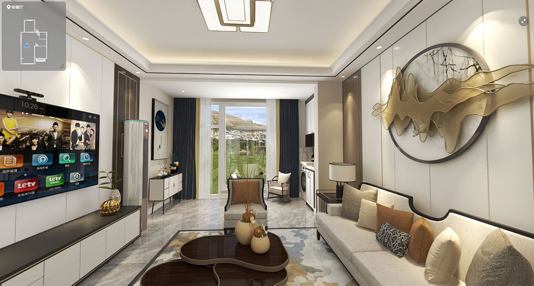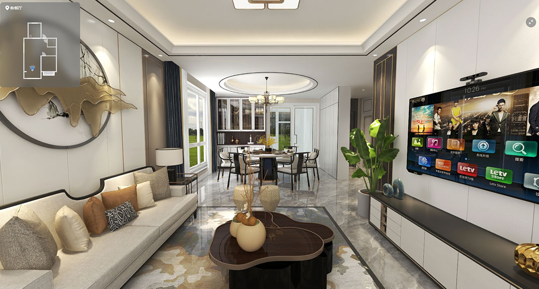 雍錦半島180㎡別墅上疊客廳輕奢風格裝修案例效果圖
