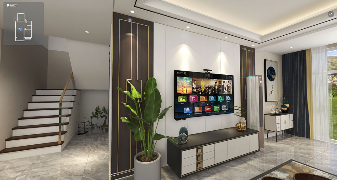 雍錦半島180㎡別墅客廳電視上疊輕奢風格裝修案例效果圖