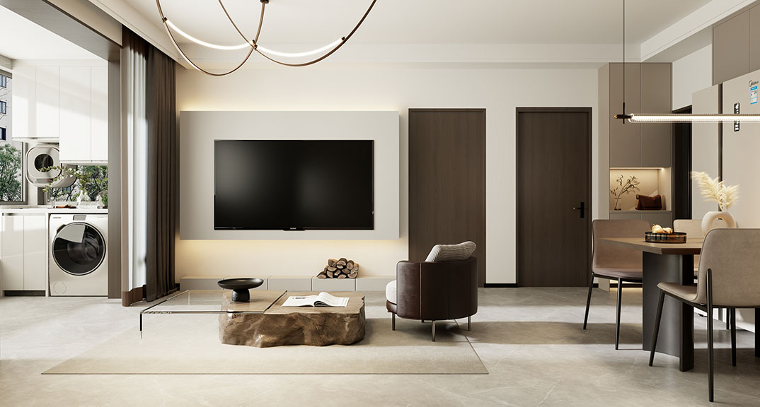悅動灣109㎡三室兩廳客餐廳現(xiàn)代簡約風格裝修案例效果圖