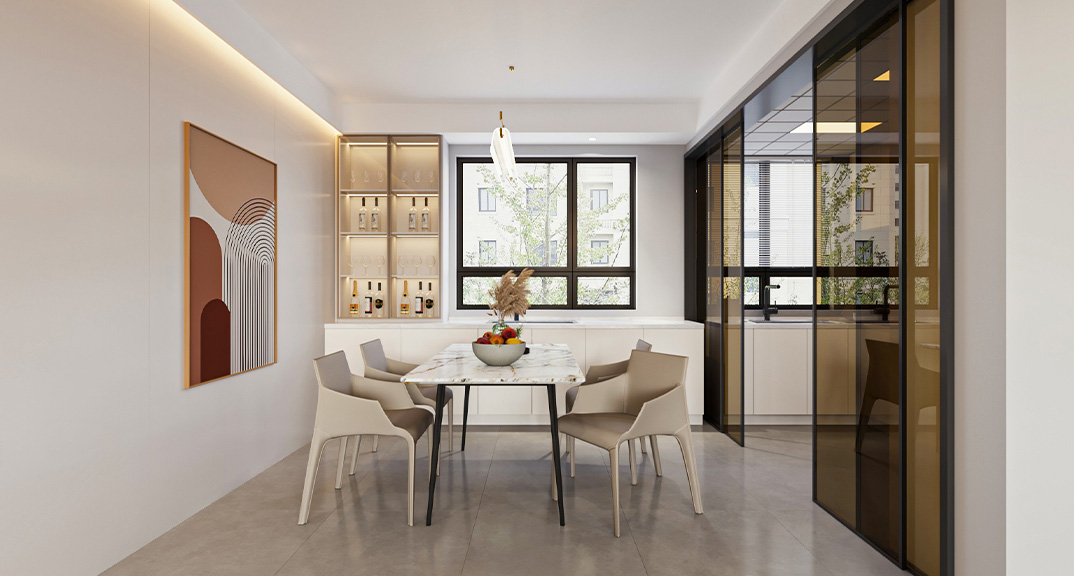 玖熙城160㎡四室兩廳餐廳現(xiàn)代簡約風格裝修案例效果圖