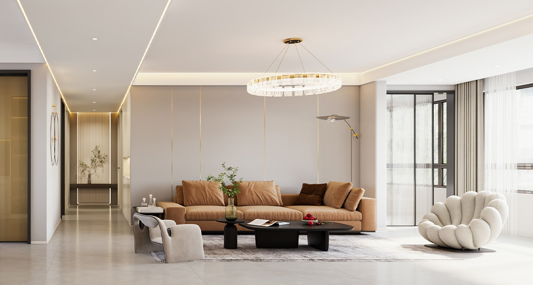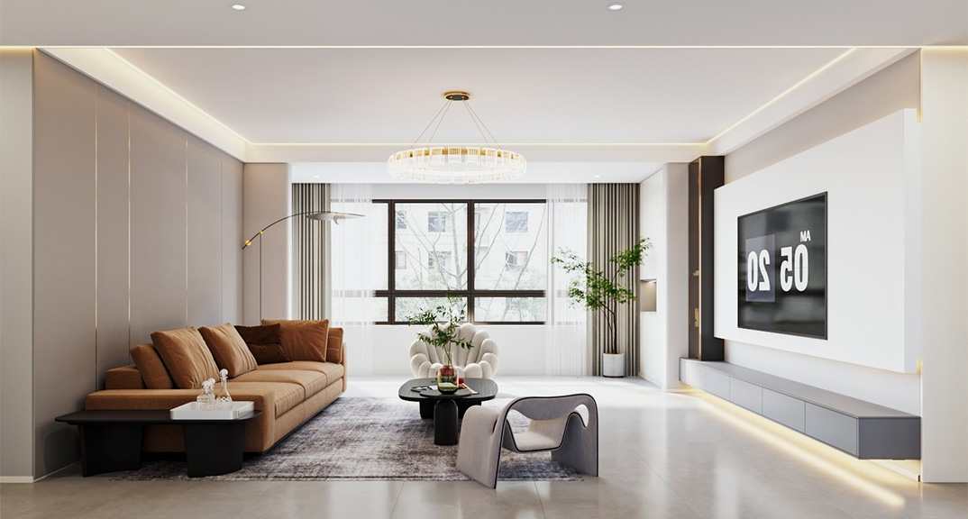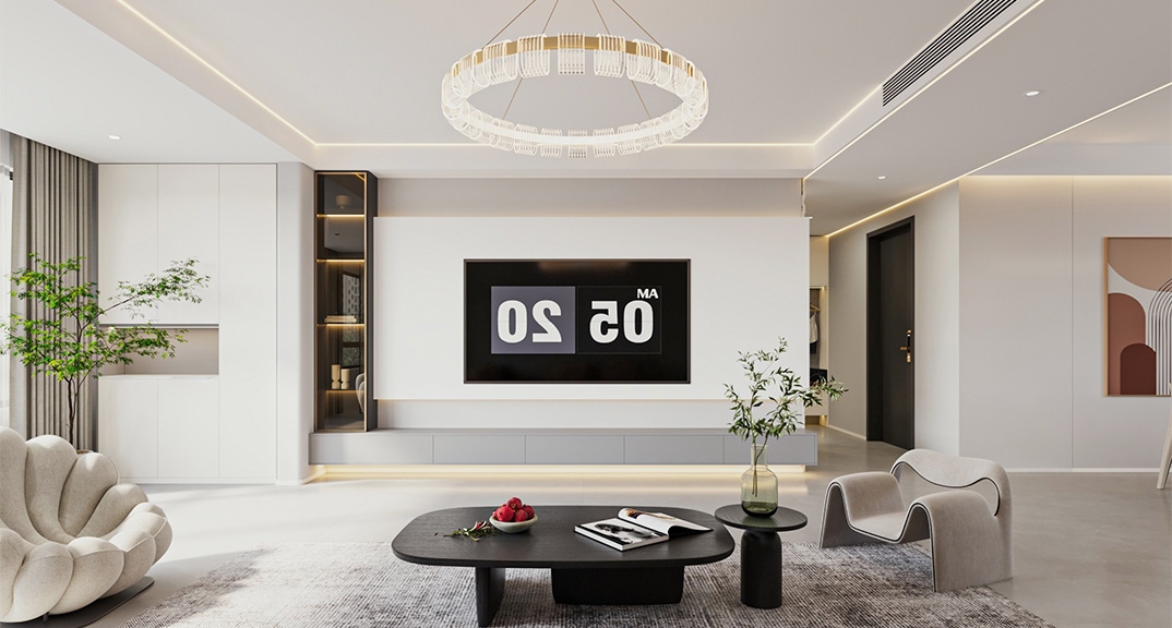 玖熙城160㎡四室兩廳客廳現(xiàn)代簡約風格裝修案例效果圖