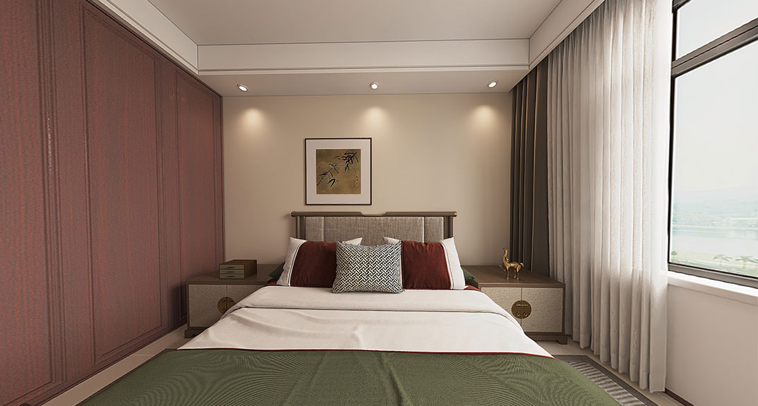 這是一套新中式風(fēng)格,以中國傳統(tǒng)文化內(nèi)涵為設(shè)計(jì)元素,在室內(nèi)布置、色調(diào)以及家具、陳列的造型等方面,吸取傳統(tǒng)裝飾。中式風(fēng)格的家具對稱、簡約、樸素富有文化內(nèi)涵,體現(xiàn)主人較高審美與社會(huì)地位。 中式家具裝修風(fēng)格的設(shè)計(jì)多采用簡潔、硬朗的直線條,不僅迎合了中式家具追求內(nèi)斂、質(zhì)樸的設(shè)計(jì)風(fēng)格,還反映出現(xiàn)代人追求簡單生活的居住要求,使中式風(fēng)格更加實(shí)用,更富有現(xiàn)代感。
