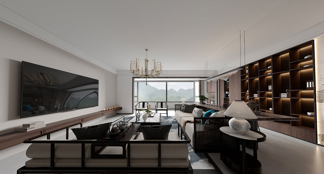 金港雅園216㎡平層新中式風(fēng)格裝修vr全景案例