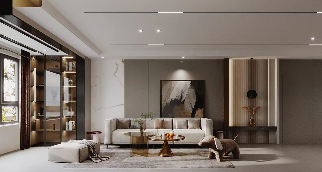 萊頓海語墅140㎡四室兩廳客廳沙發(fā)現(xiàn)代簡約風格裝修案例效果圖
